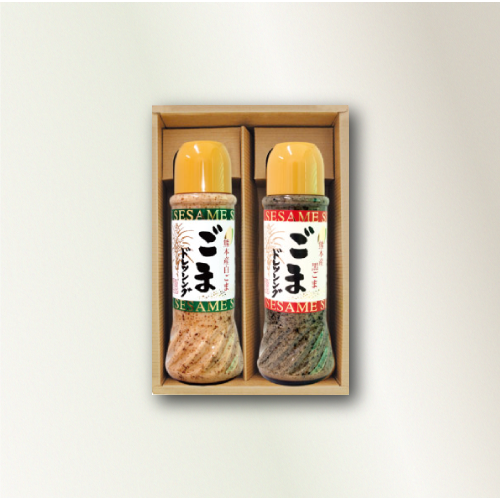 看板商品の国産白ごまドレッシングと、 さっぱりした風味の黒ごまドレッシングの2本入りギフトセットです。 お中元お歳暮等のギフトはもちろん、お祝いや仏事のお返しとしても重宝されています。 釜屋特選の贅沢ギフト、大切なあの方に。
