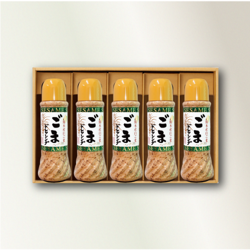 看板商品の国産白ごまドレッシング5本入りギフトセットです。 お中元お歳暮等のギフトはもちろん、お祝いや仏事のお返しとしても重宝されています。 釜屋特選の贅沢ギフト、大切なあの方に。