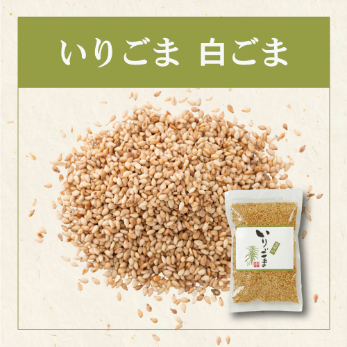 白ごまは甘味があり優しい味わいが特徴。どんなお料理にも馴染みやすく万能です。
