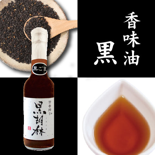昔ながらの圧搾製法でじっくり絞った、最高級のごま油。やや黒みがかった深みのあるごま油です。中華料理に最適!香り立つ黒ごまの風味が特徴です。