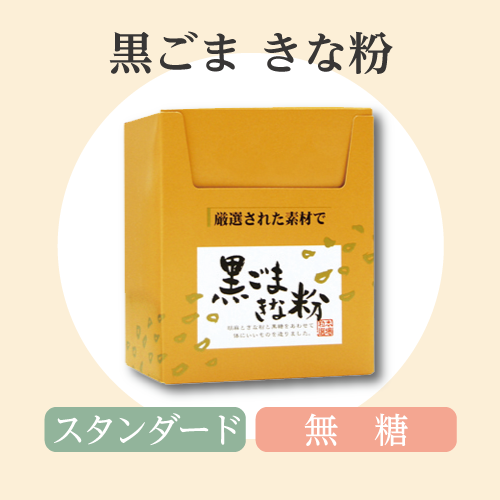 釜屋独自の釜煎り焙煎した香り豊かな黒ごまをまるごと細かくすって、北海道十勝産の石臼びききな粉をブレンドしました。黒ごまの風味を生かしたきめ細かく口どけの良い粉末タイプです。