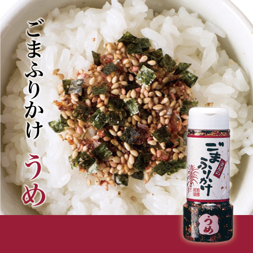 梅の果肉をたっぷり入れて、カツオと上質の海苔を合わせたふりかけです。程よい酸味でご飯がすすみます。手軽に使えるボトルタイプです。